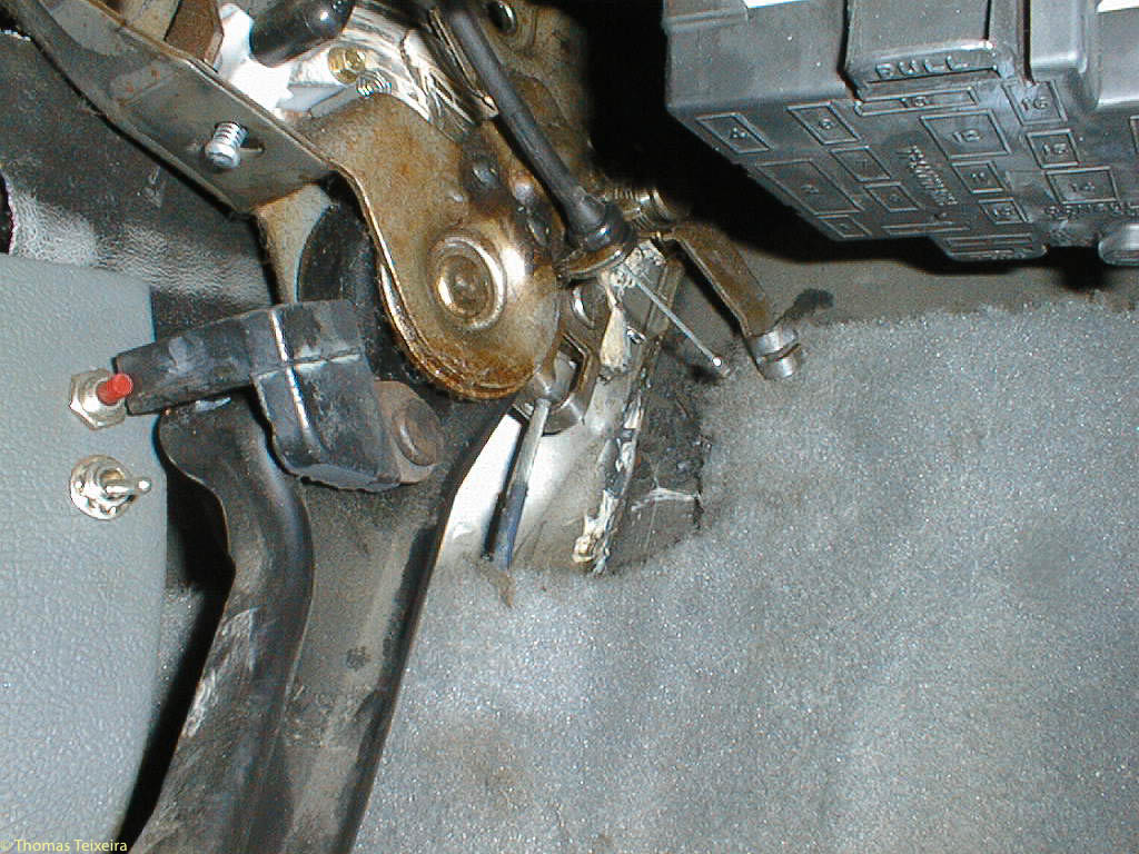 way will result in a nasty surprise (don't ask me how I know). The parking brake in these pictures is definitely in the "armed and dangerous" position, but you can install the cable like this if you're careful.