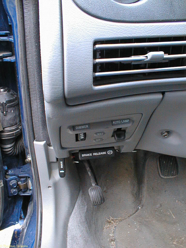 The pictures are from a 1994 Taurus SHO. The principles are the same for any SHO, and perhaps any Taurus or Ford with a pedal operated parking brake.